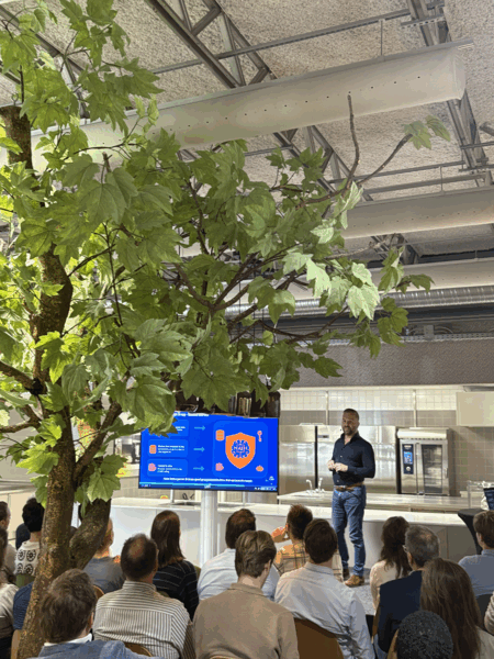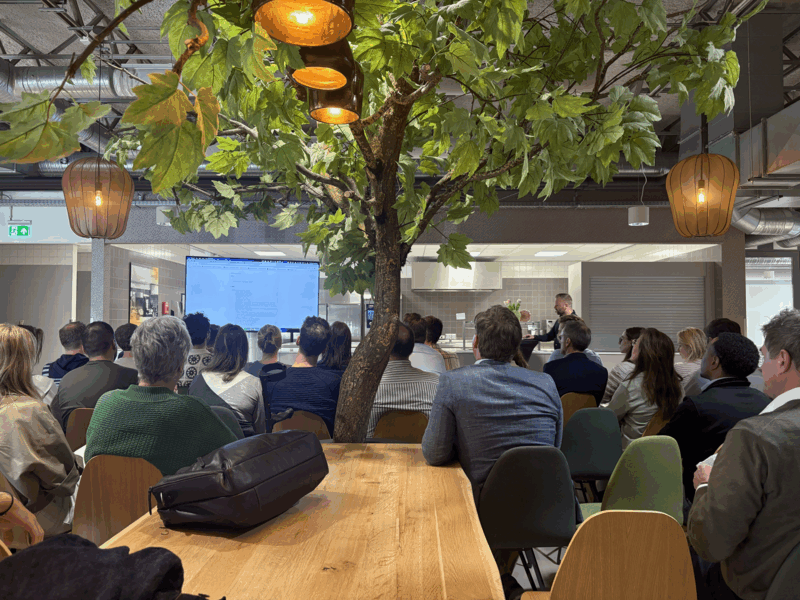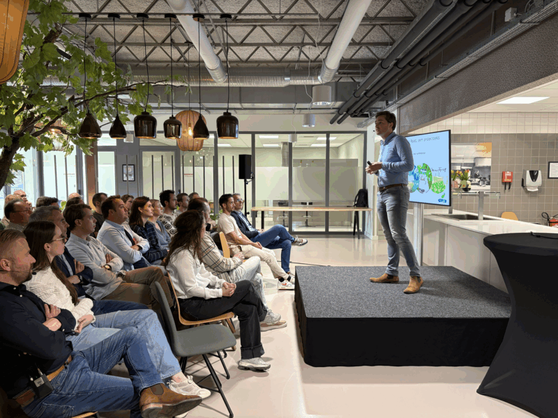 Waar Joep het bredere plaatje schetste, bracht CTO Sjors Otten (Food For Analytics) het verhaal direct naar de praktijk. Met een concrete case en een live demo van de AI-tool Ask Titan liet hij zien hoe organisaties vandaag al stappen zetten. Een opvallend moment: toen hij letterlijk de achterkant van zijn applicatie liet zien, werd duidelijk hoe complex het verwerken van datastromen is.